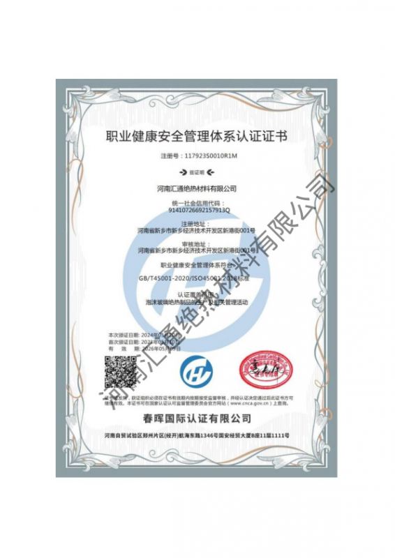 職業(yè)健康管理體系認(rèn)證證書