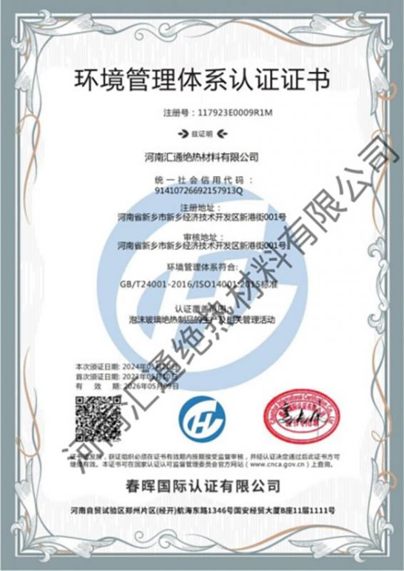 環(huán)境管理體系認(rèn)證證書